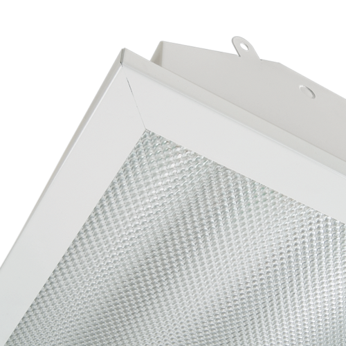 Smooth frosted white lens with wireguard and door frame.