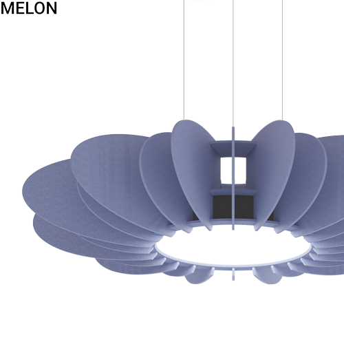 Spoke – a round drum light wrapped in acoustic softness and defined by clean, modern lines. Its circular body and radiating acoustic fins form a subtle, spoke-inspired silhouette that seamlessly unites illumination and sound control. Delivering warm, even light while quietly enhancing acoustic comfort, Spoke is a simple shape with a bold architectural presence.