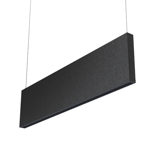 A suspended acoustic linear form offering visual balance and sound absorption without illumination. Completely customizable in height, length, and width for seamless integration into any environment.